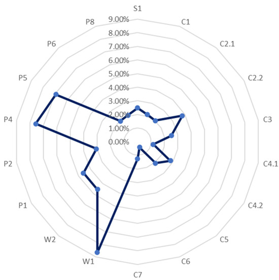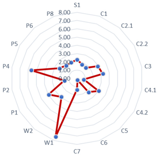 | S1 | C1 | C2.1 | C2.2 | C3 | C4.1 | C4.2 | C5 | C6 | C7 | W1 | W2 | P1 | P2 | P4 | P5 | P6 | P8 |