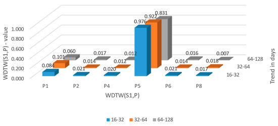 WDTW index between S1 and P1, P2, P4, P5, P6, and P8 using second level wavelet decomposition in the WDTW algorithm. Source: Own calculations.