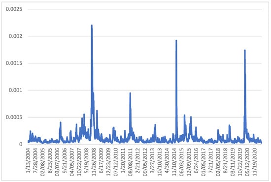 - Nelson, Daniel. 1991. Conditional heteroskedasticity in asset returns: A new approach. Econometrica 59: 347–70. [Google Scholar] [CrossRef]