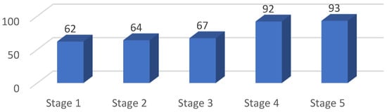 The analyses regarding the strategies for managing environmental risks were also extended for the future, from the point of view that strategic factors related to environmental protection are expected to be strengthened by the respondents in the next 3–5 years. In the course of this, a new cluster analysis was carried out (Table 8), and at the same time, the characteristics of each cluster were compared for the present and the future. Based on the cluster centers, the same clusters emerged; however, it can be concluded that the Awakening cluster is weaker compared to the current situation, as it is characterized by slightly negative values for the becoming-sustainable Stage 1 variables. The following movements can be observed between the clusters: