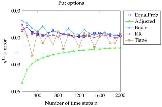 - Bock, Alona, and Ralf Korn. 2016. Improving convergence of binomial schemes and the Edgeworth expansion. Risks 4: 15. [Google Scholar] [CrossRef]