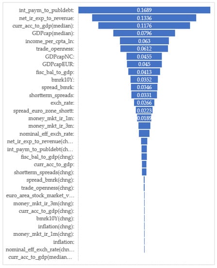 - Money and Bond Market rates: In order to measure the effect of changes in the monetary policy of central banks and interbank liquidity (Prodanov et al. 2022a), we tested (as a proxy) the short-term interest rates (Euribor, domestic money market rates on different time bases—day−day, monthly, etc.). Another important factor is the market’s assessment of the risk exposure of individual countries’ debt securities. The 10-year maturity for each country compared with 10-year benchmark indicators is revealed by the spread of the long-term interest rate for convergence purposes. Another aspect that affects monetary policy is the rate of inflation, measured by the inflation rates (HICP) indicator.