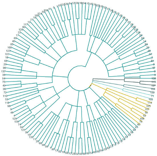 Circular dendrogram for the clustering of group I II (4, 10, 12).