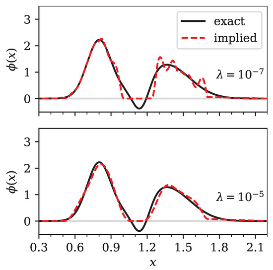 So far, we have discussed how to treat the kernel matrix G of Equation (6) that relates prices Pr and densities . Remember that, in practice, the prices Pr are known, and, thus, we are interested in the density . This means we now attempt to solve Equation (6) approximately, by actually solving Equation (15).