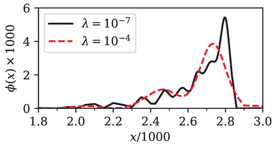 The transformed density that minimizes the squared error with additional -regularization on (see Equation (18)) can be found using various optimization algorithms. While some authors recommend using their own implementation of the Alternating Direction Method of Multipliers (ADMM) (Boyd et al. 2010), we have found that the open-source solvers ECOS (Domahidi et al. 2013) and SCS (O’Donoghue et al. 2016) both deliver excellent performances, especially with systems, such as the system we attempt to solve, which usually have only a few degrees of freedom (remember that has only Q entries). Therefore, we refer readers who are interested in details of the implementation of these solvers to the respective papers. In our case, ECOS seemed to be a good choice for the numerical solver.