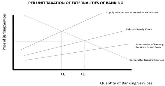 Given the fragility of banks, the economic assumption underlying their regulation is that shareholders and debtholders, ignoring the social costs, under-price the cost of debt and equity, encouraging excessive asset creation, risk-taking and socially undesirable levels of bank failures. Regardless of the critical role performed by financial intermediaries, the magnitude and nature of their “output”, is sub-optimal. If the excessive provision of financial services resembled a social cost such as pollution, then as shown in Figure 1, such a cost might be internalised through a Pigouvian tax, raising the weighted average cost of capital.6