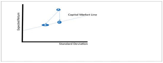 In other research, the fluidity between risk exposure and capital levels was examined. According to (), the majority of banks mitigate the effects of increases in capital levels by increasing asset risk posture and vice versa. Similarly, imposing constraints on market risk exposure, as measured by VaR, leads ironically to greater risk as banks compensate for lower returns by taking bigger bets with remaining risk capital, which may be exacerbated when previously uncorrelated assets classes become correlated during crises (). In the work of (), an exogenously imposed bound on the maximum VaR leads to riskier trading and greater losses: The fat left-tail phenomena. This result resembles the theoretical insights of (), in which regulation through a constraint upon VaR, produces greater risk (as measured by standard deviation, or probability of extreme losses), increasing a bank’s fragility. In research by (), myopic VaR constraints exacerbate financial shocks. Similarly, in the work of (), VaR constraints lead to changes in inter-temporal hedging behaviour increasing risk exposure. The potential for unintended consequences of regulation appears in the research of (): Using the Mean-Variance, CAPM, framework, they argue that through VaR regulation, the CML is shifted downwards.4 Theoretically, they show how regulation induces a bank to select a less risky portfolio, relative to the unregulated, optimal risky portfolio. Regulation results in a cap on market risk producing sub-optimal returns and allocative distortion. Offering political-economy insights, some researchers argue that Basel regulations and their capital adequacy rules would not have prevented failures but are designed to placate political constituencies and banking interests ().