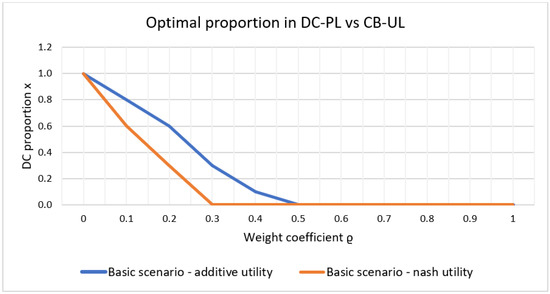 To solve numerically our optimization problem described in Equations (18) and (19), we fix a number of parameters to find the optimal mix between the two products, DC-PL and CB-UL, based on the preferences of the employer and the worker and depending on the bargaining power between them. In this regard, we present hereafter the chosen values for the different parameters introduced in Section 2.2 to represent the basic scenario in our paper. Afterwards, we carry out sensitivity analyses for a wide range of parameters in order to study their impact on the optimal result obtained in the basic scenario.