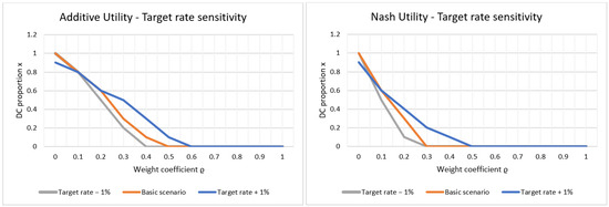 In this part, we study the impact of the target rate on the optimal results, so we change the value of the target rate by ±1% and illustrate the results in Figure 3.