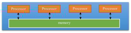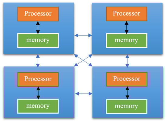 Several researchers have applied parallel regression in LSMC. Parallel computing for regression problems often involves more complicated matrix computation. Especially in the least square linear regression, an effective parallel algorithm is using matrix decomposition techniques such as QR decomposition or Cholesky decomposition (Datta 1985). The distributed LSMC has advantages over the parallel LSMC in terms of computational complexity and scalability. By avoiding the complex matrix computation in the parallel LSMC, the distributed LSMC reduces the total computational complexity by partitioning the data into smaller subsets. In addition, this strategy naturally fits the architecture of cloud computing, which is built on distributed computing technologies. With enough cloud computing resources, we can greatly reduce the computing time required and provide advantages in application environments where efficiency and scalability are critical (Leopold 2001). It is essential to distinguish between these two approaches (Riesen et al. 1998). A parallel computing system consists of multiple processors that communicate with each other using a shared memory, as shown in Figure 4, whereas a distributed computing system contains multiple processors connected by a communication network, as shown in Figure 5. The parallel regression requires complex matrix transformations, while the distributed LSMC method we proposed here does not require that (Datta 1985).