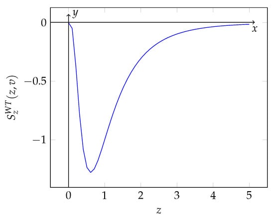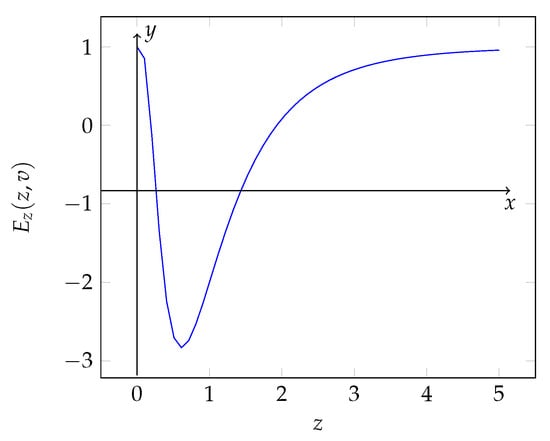 By the results in Equation (8) and in Lemma 1, the function admits two stationary points and () if and only if is zero for some values of z. This condition is verified if and only if the minimum point of assumes a negative value, or rather