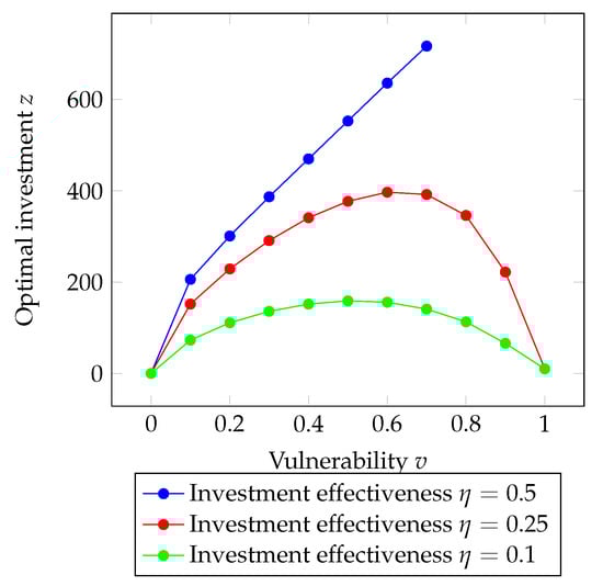 Now, we analyze the impact of the vulnerability v on the optimal investment z.