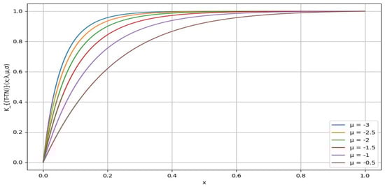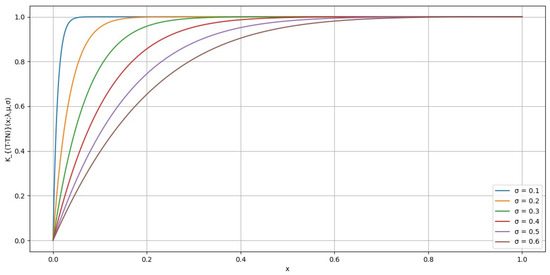 It is important to note that μ and σ are location and scale parameters, respectively, and do not affect the shape of the distortion function. Therefore, varying these parameters does not change the overall pattern of the graphs but simply shifts or scales them. For simplicity, we chose μ = −0.5 and σ = 1 in Figure 5 to illustrate the effect of the distortion function under these conditions.