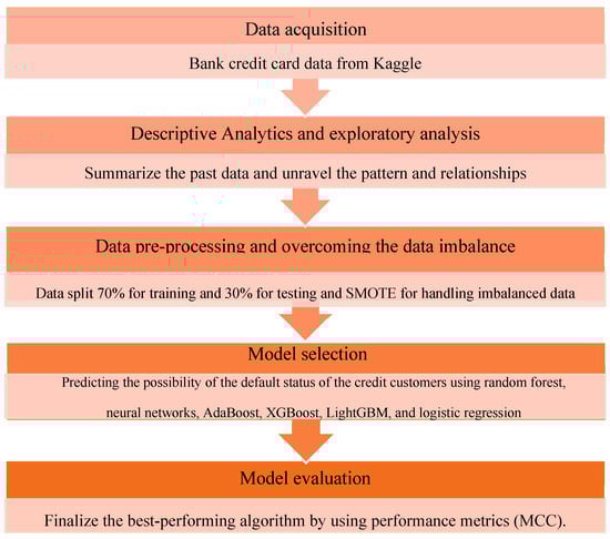 Some of these research studies have focused on the development of one single algorithm; for example, a multinomial logistic regression model is used in the research by () to learn about the variables influencing default and attrition occurrences on credit. The accuracy of the multinomial logistic regression model in identifying customers based on the chance of defaulting is 95.3%.