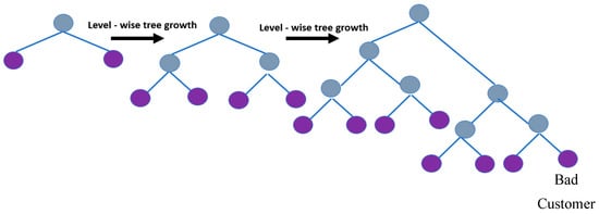 According to (), since its debut in 2016, LightGBM has been extensively adopted in the field of big data and machine learning. Together with XGBoost, it is considered a high-powered machine-learning tool. Publicly available experimental data indicate that LightGBM is more efficient and precise than other existing boosters. LightGBM is more precise, needs less memory, and is quicker than XGBoost. Further, experiments indicate that the LightGBM algorithm can acquire linear acceleration by utilizing many machines for specific training. Consequently, the benefits of this algorithm manifest in the following five aspects: low memory usage, rapid training speed, good model precision, support for parallel learning, and rapid processing of large datasets.