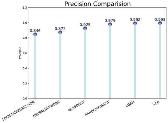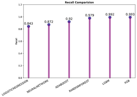 In another related study (), the authors conducted an in-depth analysis of credit risk using a variety of machine-learning and deep-learning models, including neural networks, logistic regression, AdaBoost, XGBoost, and LightGBM. The authors compared the performance of these models based on evaluation metrics such as accuracy, precision, recall, F1 score, ROC, and MCC. Their findings revealed that XGBoost showed a strong predictive performance, which aligns with our study’s results.