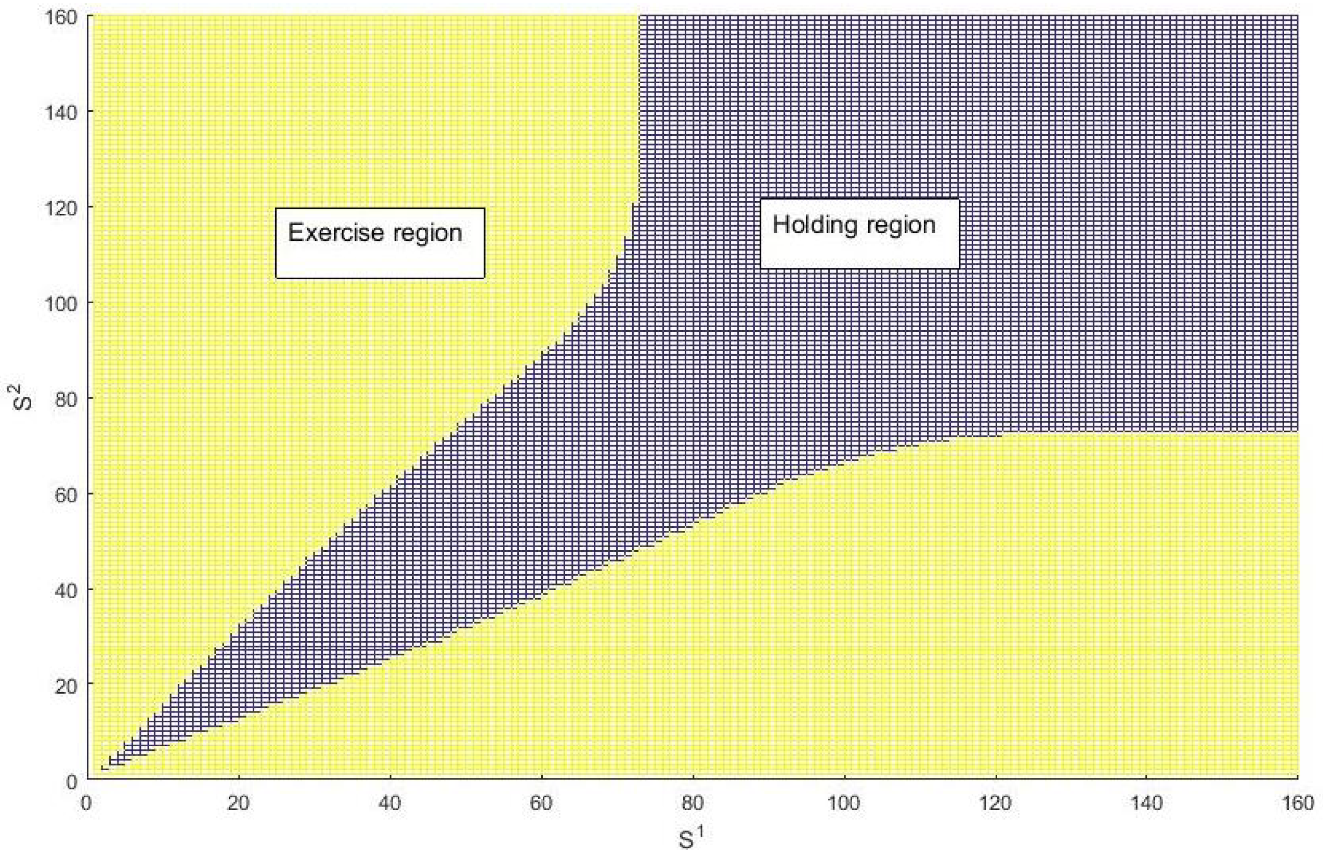 Figure 1 plots the exercise region of a put-on-min option at the fourth of ten decision dates, where