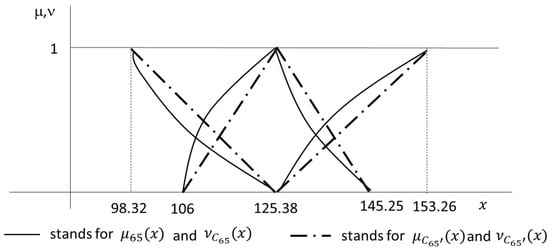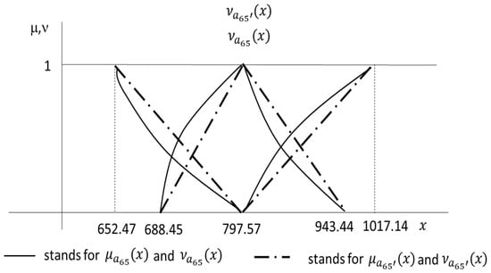 Let be a continuous and differentiable function, such that the values of the input variables are given the means of IFNs . This generates IFN , , whose characteristic functions and must be obtained by using a convolution of a τ-conorm with a τ-norm. Among these combinations, it is common to generalize Zadeh’s principle by using the min-norm and max-conorm as follows ():