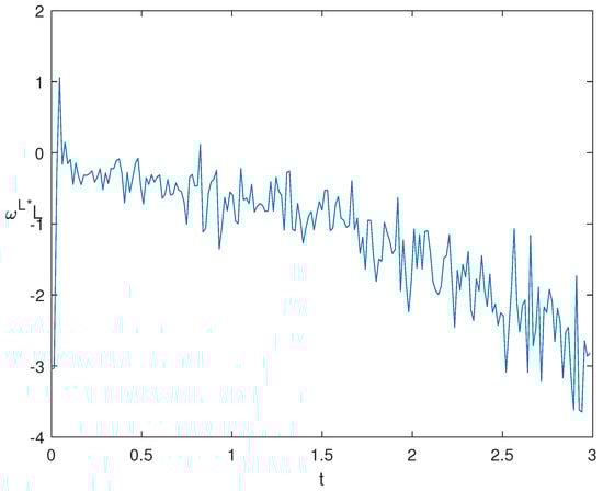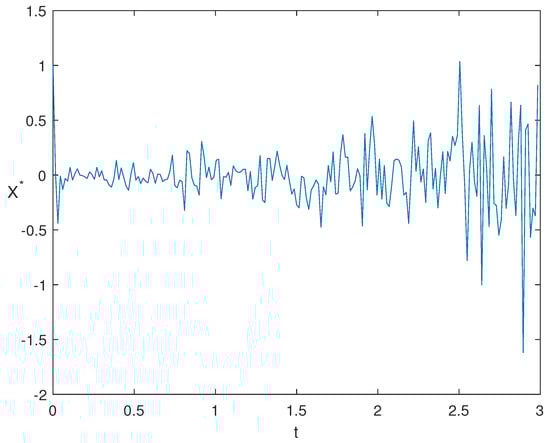 Substituting the optimal investment strategy into , we obtain the corresponding . Here, we offer a possible path of and in Figure 1 and Figure 2, respectively.