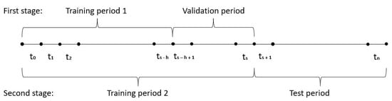 An illustration of the training, validation, and test periods to train and evaluate the models.