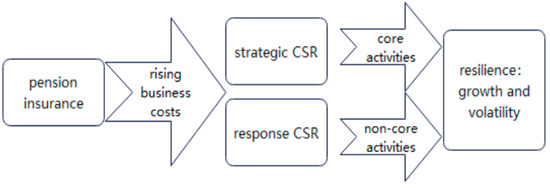 According to resource-based theory, firms can improve their competitiveness and prevent crises by integrating resources (Yang et al. 2022). Following understandings derived from resource-based theory and stakeholder theory, firms can effectively strengthen the connection between themselves and strategic stakeholders such as employees, consumers, and suppliers by enhancing their strategic CSR, which will enable them to acquire scarce strategic resources more readily (Yang et al. 2022). Specifically, investing in CSR strengthens the connections between firms and strategic stakeholders, which will enable such firms to obtain scarce resources that are closely related to their core business, thus strengthening their defensive capabilities in the face of crises and enhancing their stability and flexibility (DesJardine et al. 2019; Sajko et al. 2021; Wieczorek-Kosmala 2022).
