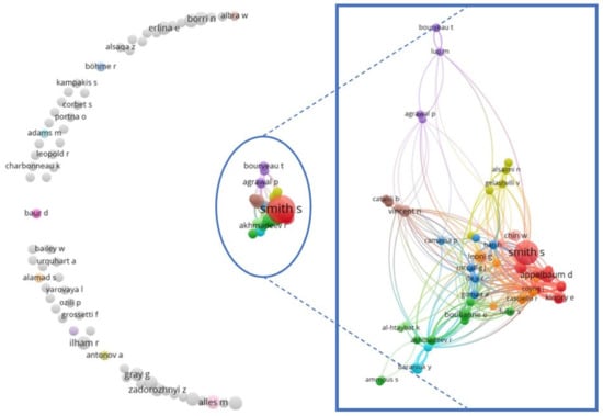 Ergo, the clusters from the citation of the authors’ network are more dispersed, which indicates that the connections between the study authors are not very tight, but the collaborations are promising.