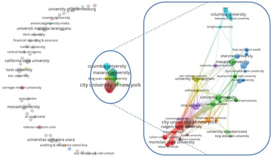 Institution citation network for CA. Source: authors’ projection with VOSviewer.