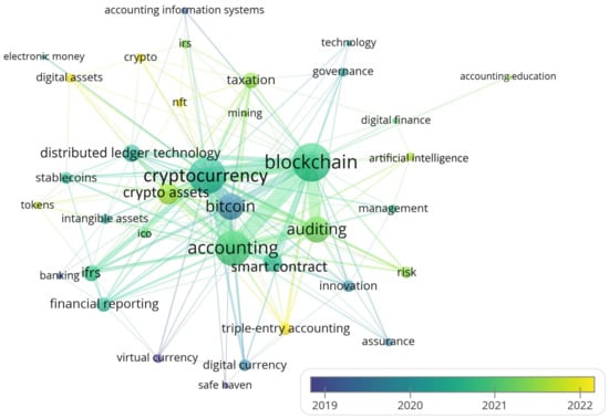 As knowledge expands and new technologies emerge, this study explores the trends of research regarding the subject of cryptocurrency accounting (CA) (; ; ; ; ; ; ; ; ; ; ; ; ) and the growing interest in specific concepts between researchers and professionals. The paper aims to evaluate scholarly scientific performance by measuring the keywords with the most significant impact in the field of research and grouping them under specific themes. Since bibliometric indicators provide quantitative information, they assess the impact and productivity of different entities or categories.