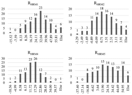 - “Research talent, % in businesses” (RHRM5): stimulation of the innovative activity of employees through support for research talents in support of SDG 9 facilitates the creation of intangible assets and an inflow of venture investments, which reduces the corresponding operational risks to companies. This variable is used to test the sub-hypothesis H5.