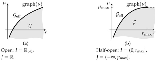 which is known as Markowitz volatility. It satisfies (r1) and (r2). However, under further assumptions on the financial market, such as the so-called “no nontrivial riskless portfolio” condition (cf. Definition A5 in Appendix A), and with from (7), even (r1n) is satisfied, and satisfies (r2s) on its domain (see Example A1 in Appendix A for more details). We provide further examples of utility and risk functions in Examples A2 and A3 in Appendix A, respectively.