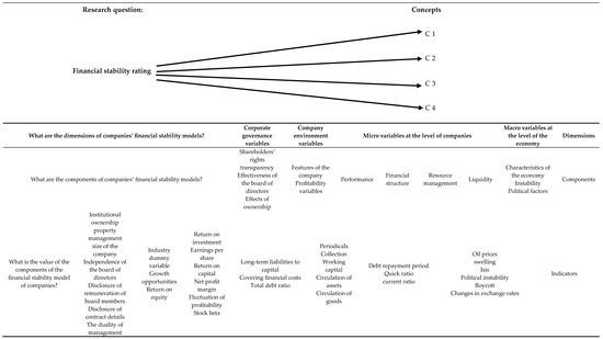 The study aims to examine the financial stability ratings in the capital market, identify and describe its constituent factors and elements, and determine their value and importance in the company’s financial stability rating model. To conduct this research, in the first stage, an exploratory study and search are conducted in the relevant literature, and on the other hand, the opinions of academic and capital market experts are used. The theoretical framework of the topic and relevant sources will also be determined, and by studying English and Arabic articles, research questions are designed to formulate the model.