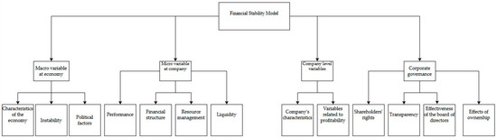 According to Table 2, by reviewing the literature, the factors affecting companies’ financial helplessness or financial instability are categorized into three categories: company-level characteristics or performance micro variables, macroeconomic-level variables, and corporate governance determining factors. The research conducted on the factors of financial instability (Beaver et al. 2011) in companies is shown as follows: