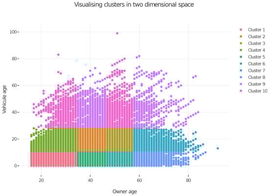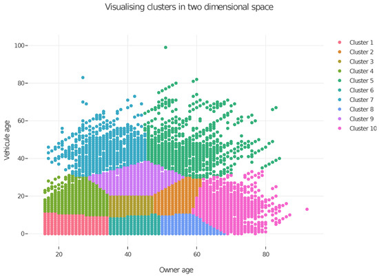 To conclude this section, we apply the spectral clustering algorithm to the Wasa insurance dataset. We first convert the variables “driver’s age” and “vehicle age” into categorical variables, as described in Section 2.3.