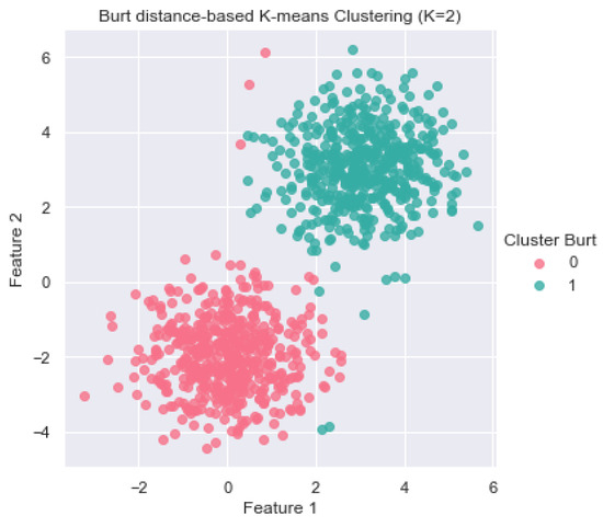 As mentioned in the Introduction, the standard K-means clustering method cannot handle categorical data because its Euclidean measure of dissimilarity in Equation (3) is only appropriate in numerical settings. The following Section 2.2 introduces Burt distance as a measure of dissimilarity for clustering non-numeric data.