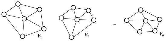 The analysis of the eigenvalues provides useful insights into the graph’s structure. Specifically, the multiplicity of the zero eigenvalue reflects the number of disconnected components in the graph, giving a way to partition the graph. For instance, if all vertices are disconnected, all eigenvalues will be zero. As edges are added, some eigenvalues become non-zero, and the number of zero eigenvalues corresponds to the number of connected components in the graph. To illustrate this, consider the graph in Figure 10, composed of K disconnected sub-graphs. In this case, the Laplacian matrix will have K zero eigenvalues, indicating that the graph consists of K independent components.