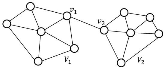 The second smallest non-zero eigenvalue, often referred to as the Fiedler value or the algebraic connectivity, is particularly useful for partitioning the graph. This value approximates the minimum graph cut required to divide the graph into two connected components. For example, if the graph consists of two groups of vertices, V 1 and V 2 , connected by an additional edge (as shown in Figure 11), vertices v 1 and v 2 on either side of the cut can be assigned to V 1 or V 2 by analyzing the values in the Fiedler vector.