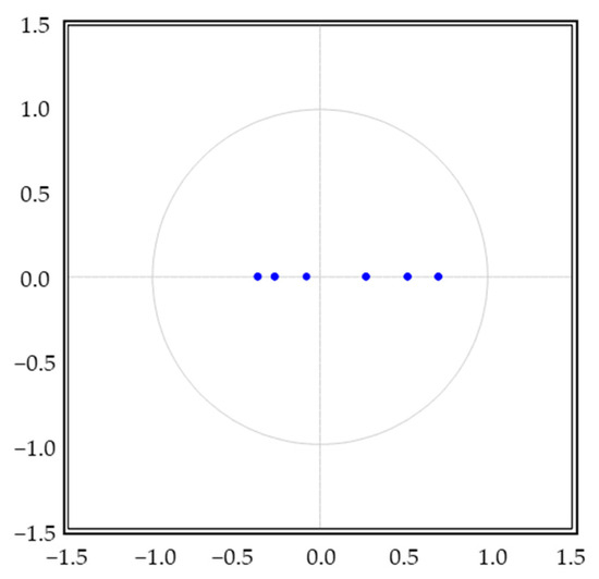To examine the dynamic relationships between the trading volumes of EUR/USD futures, USD/JPY futures, and USD/THB futures, a vector autoregressive (VAR) model of order 2 is employed. Although the lag length of one generates the minimum Schwarz information criterion (SIC) and Hannan–Quinn (HQ) values, the optimal lag length of two is chosen. As illustrated in Table 4, the VAR(2) model provides the minimum Akaike information criterion (AIC) value, and its residuals pass the test for serial correlation. On the other hand, the results of the Lagrange multiplier (LM) test for autocorrelation in the residuals of the VAR(1) model show that the null hypothesis of no serial correlation at lag 1 can be rejected at a confidence interval of 90%. The VAR(2) model also satisfies the stability condition since the inverse roots of the model lie inside the unit circle (Figure 2).