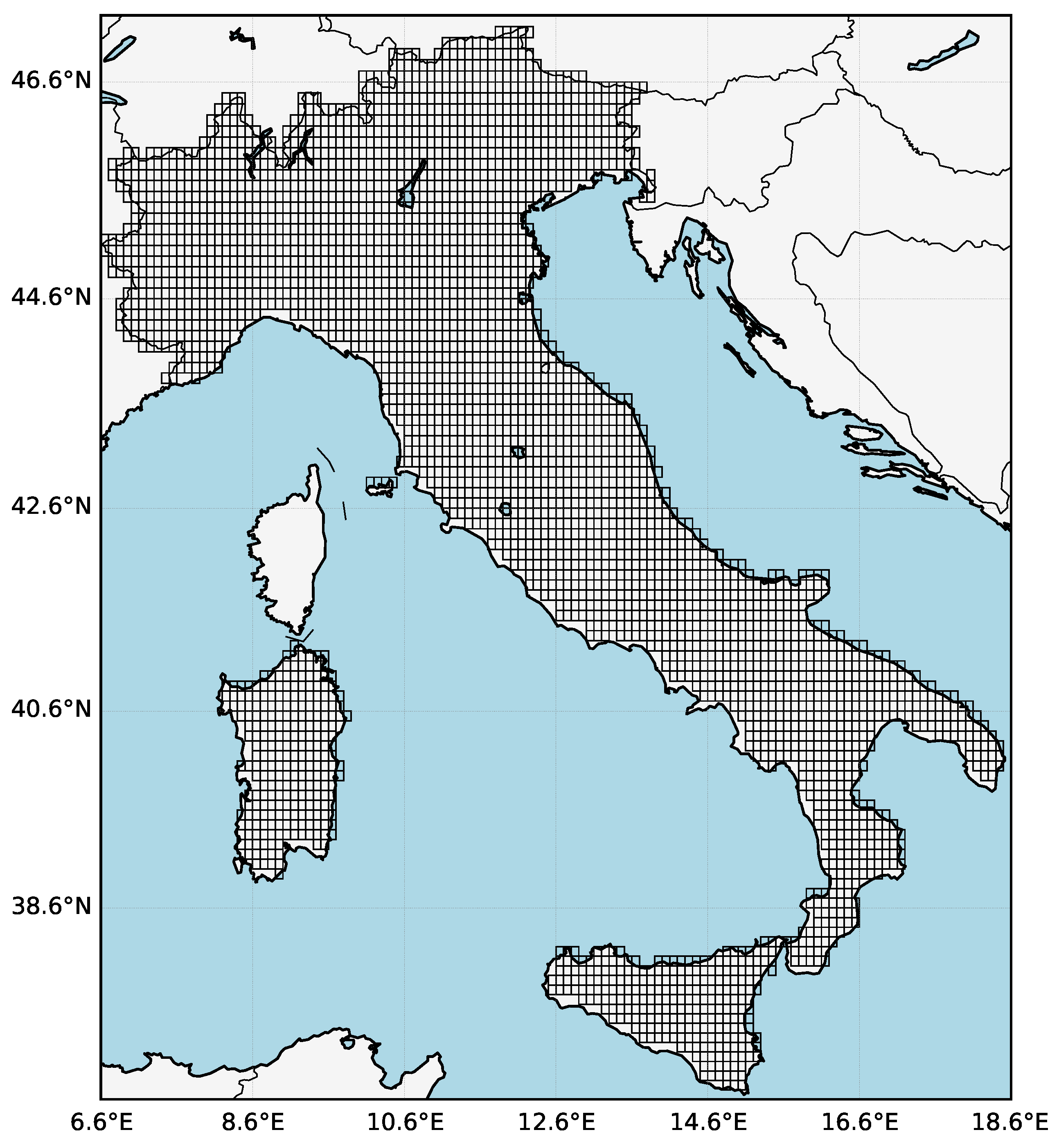 | Macro-Area | Included Regions | NUTS1 Code | Area | Coastline * (km) | Cell Nr. ** |