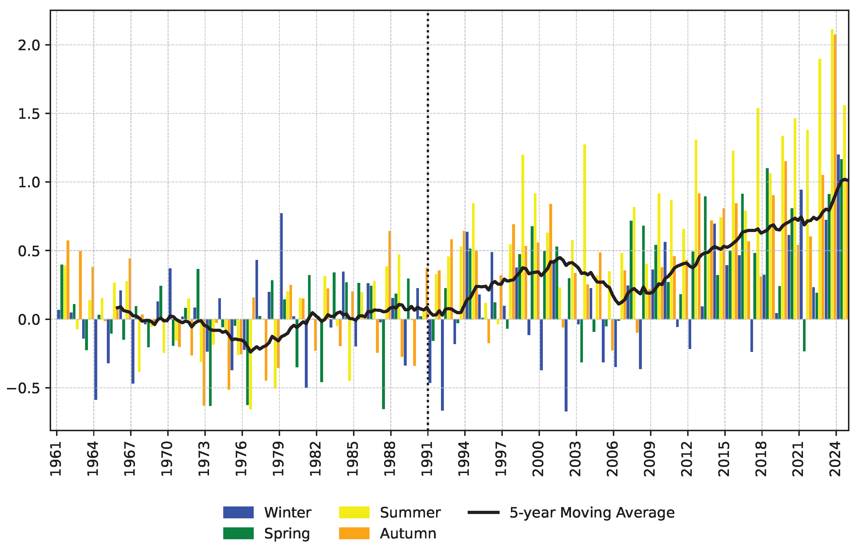 | 6 | Since anomalies are expressed in different units, magnitude comparisons are meaningful only within the same indicator across seasons. |