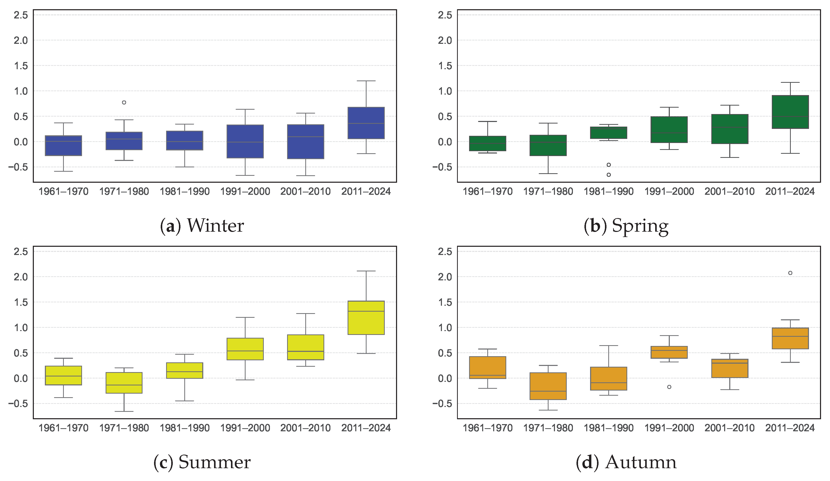 - Expert Team on Climate Change Detection and Indices. 2023. List of Climate Change Indices. Available online: https://etccdi.pacificclimate.org/list_27_indices.shtml (accessed on 10 May 2025).