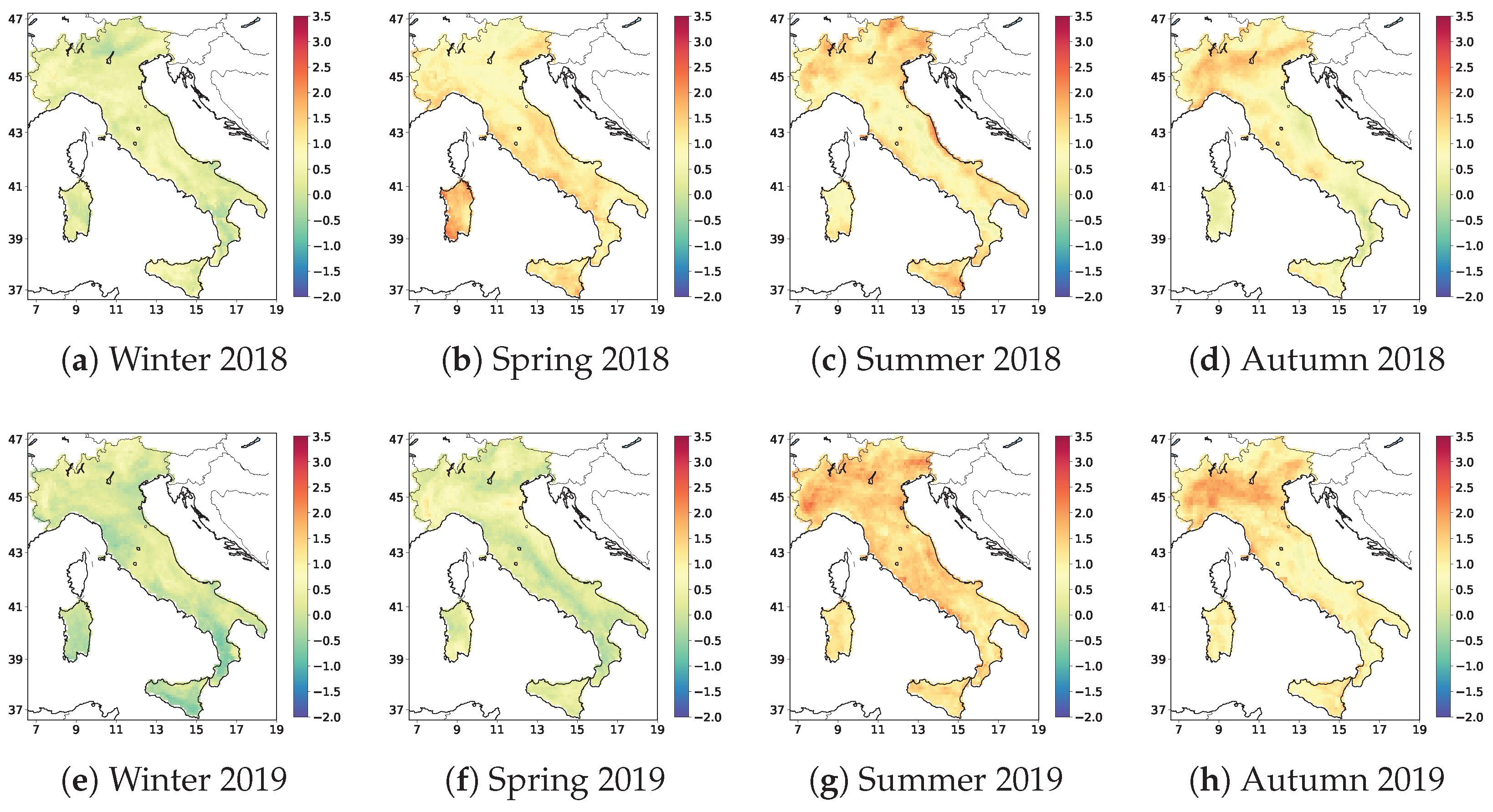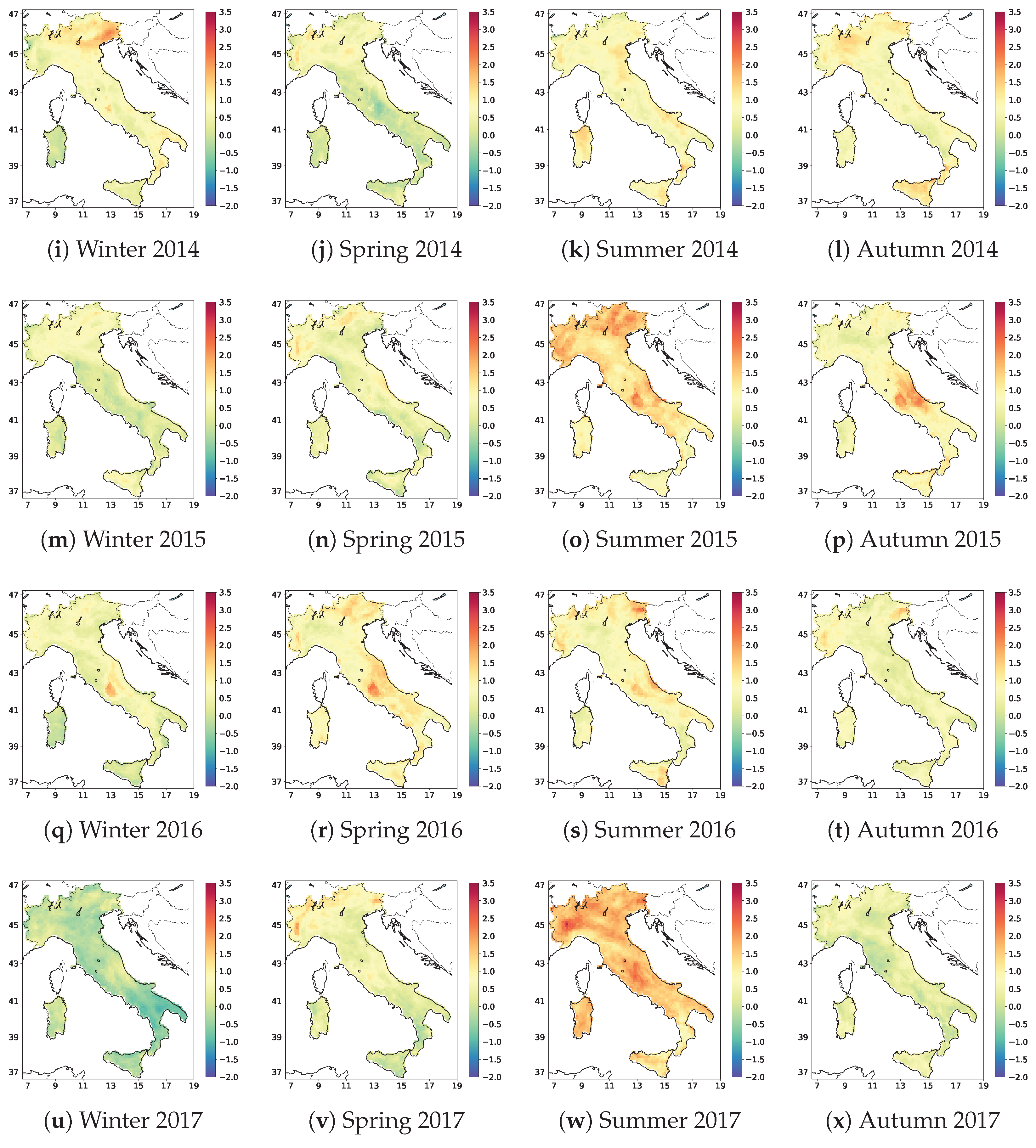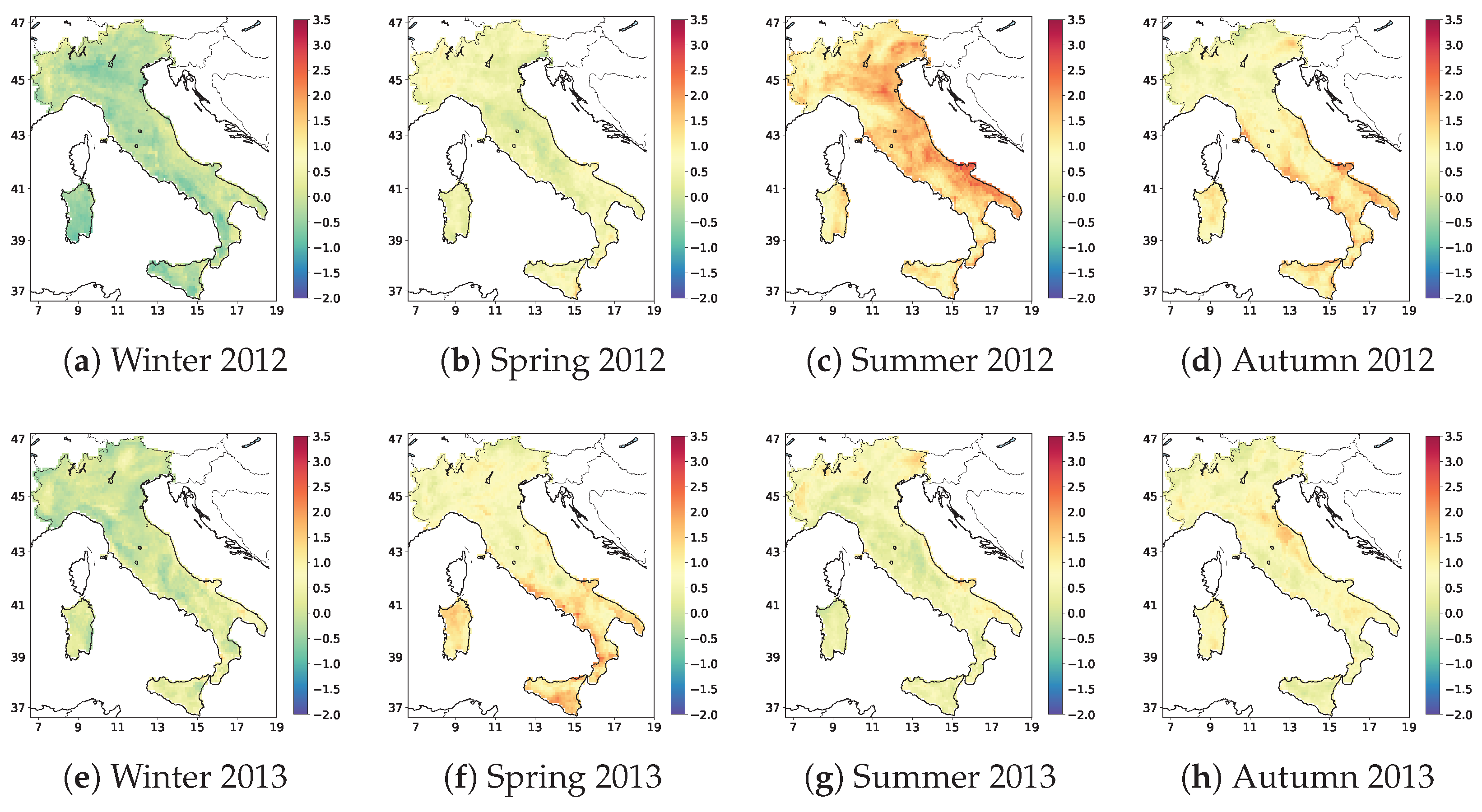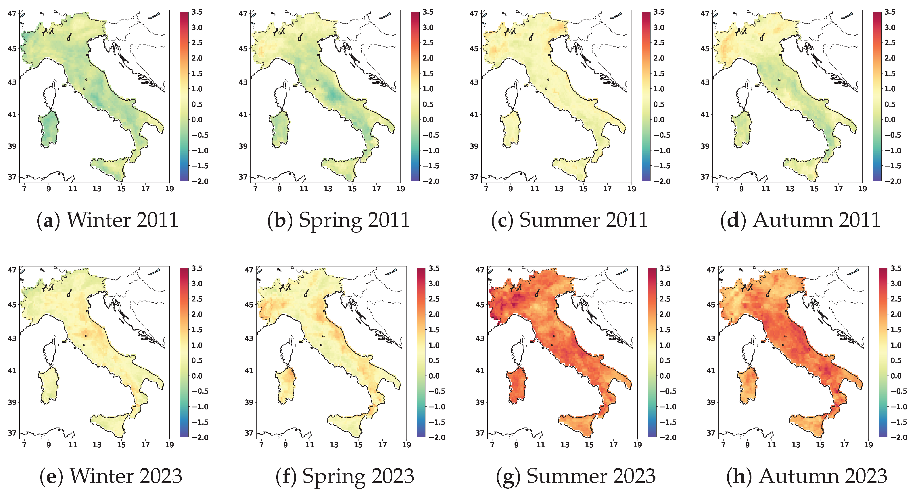 Appendix A. Spatial Distribution of the Seasonal ITACI from 2012 to 2022