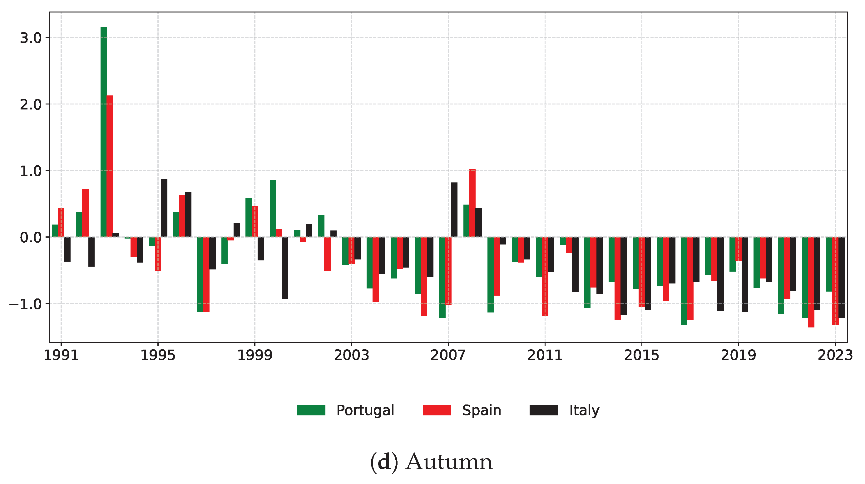 | 7 | The numerical time series of the IACI for Portugal and Spain is publicly available at https://e-actuaries.eu/downloads/iberian-actuarial-climate-index/ (accessed on 16 April 2025), whereas the FACI series for France has not been released. |
