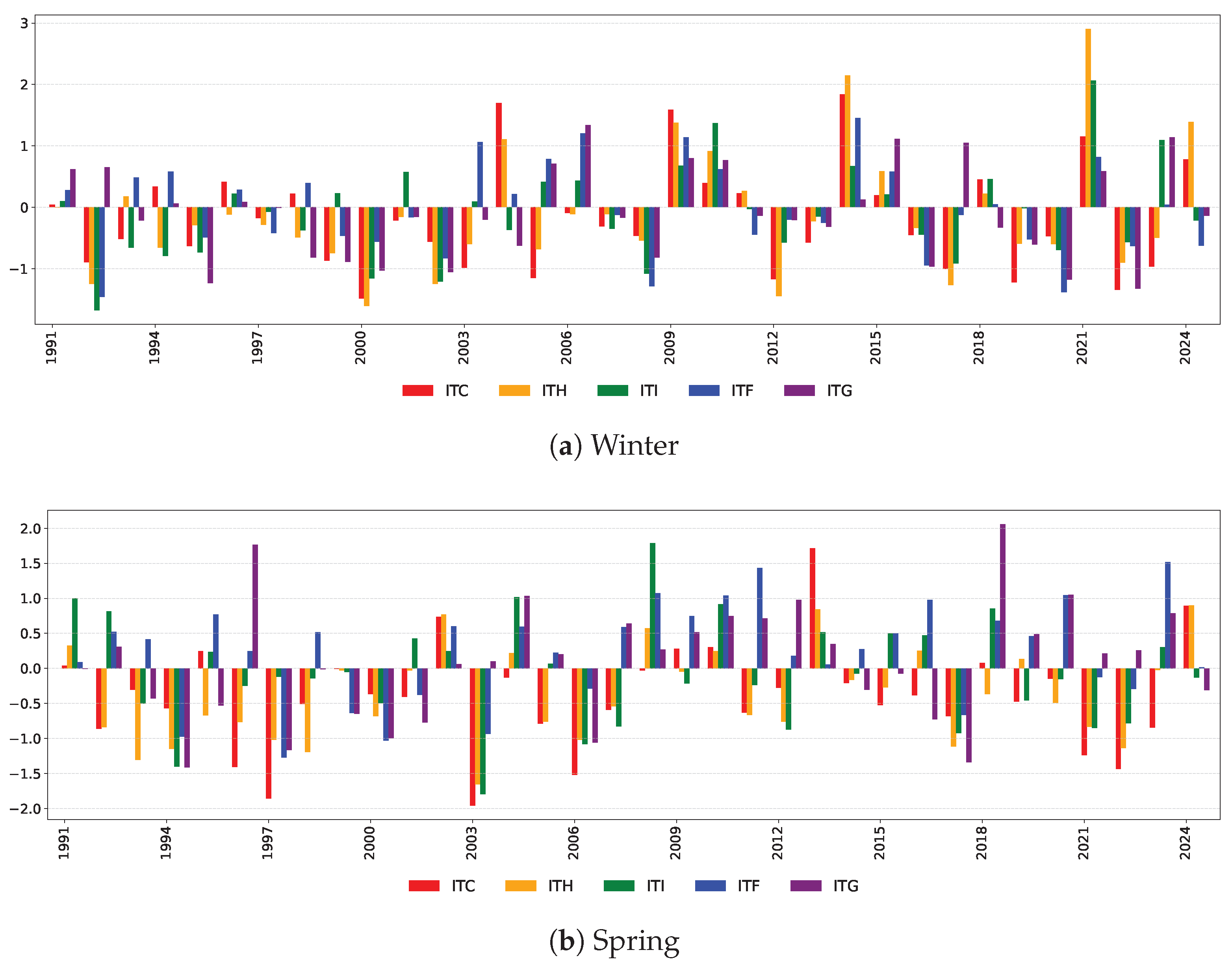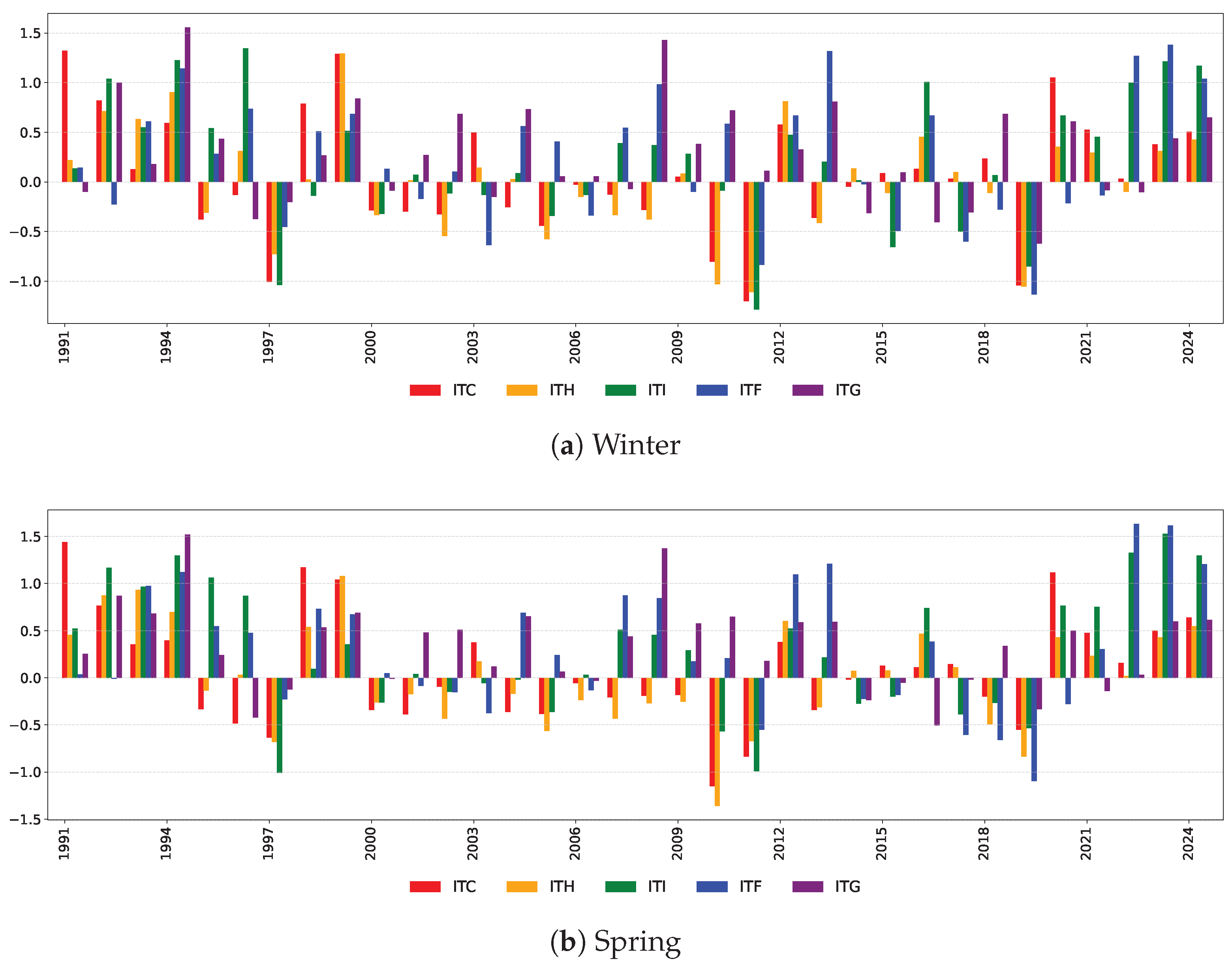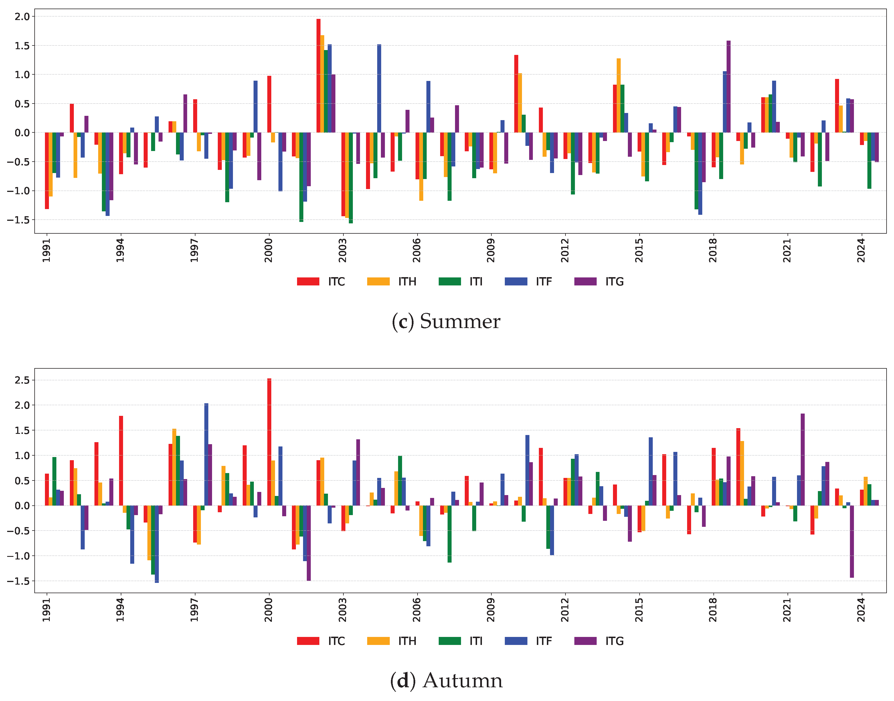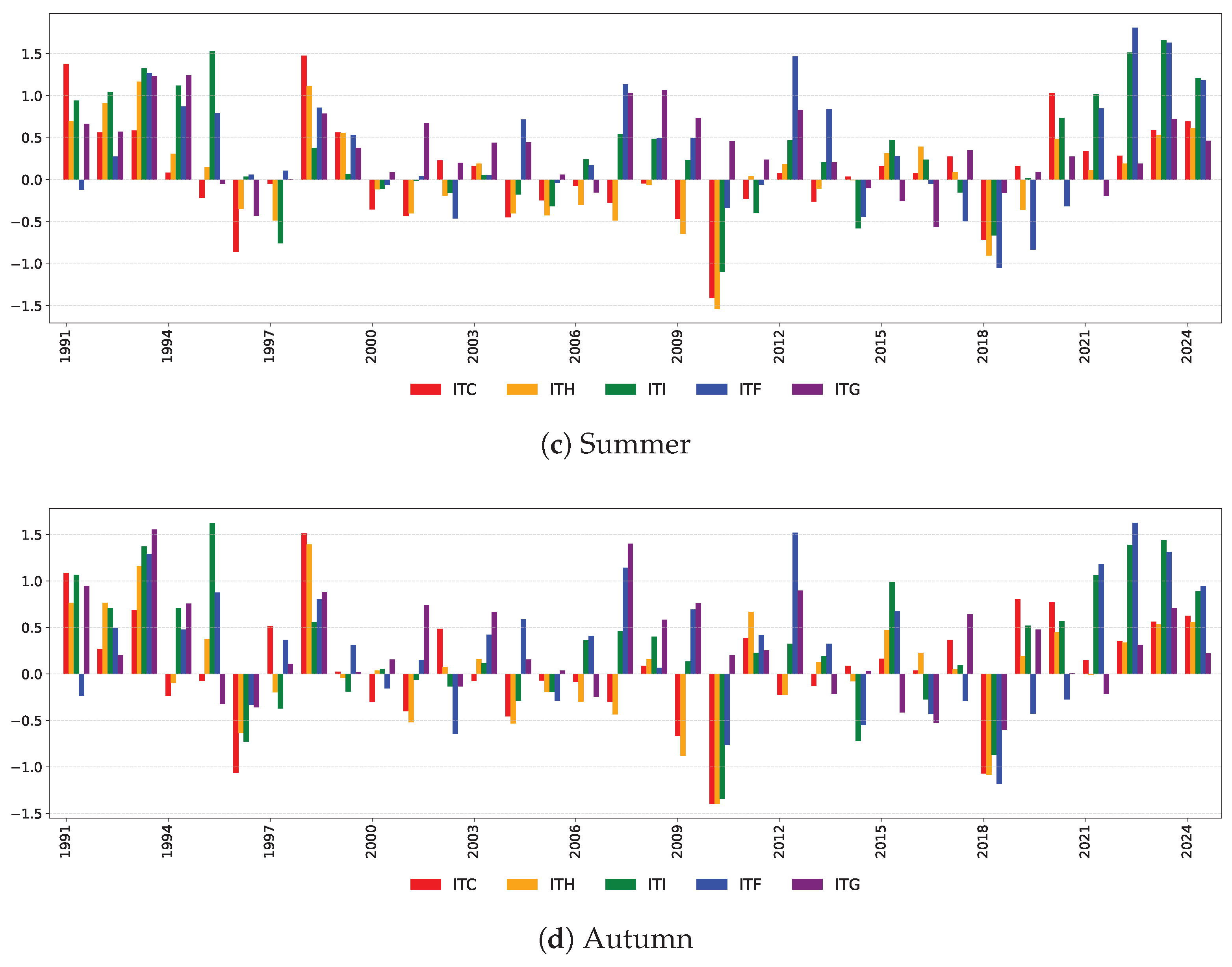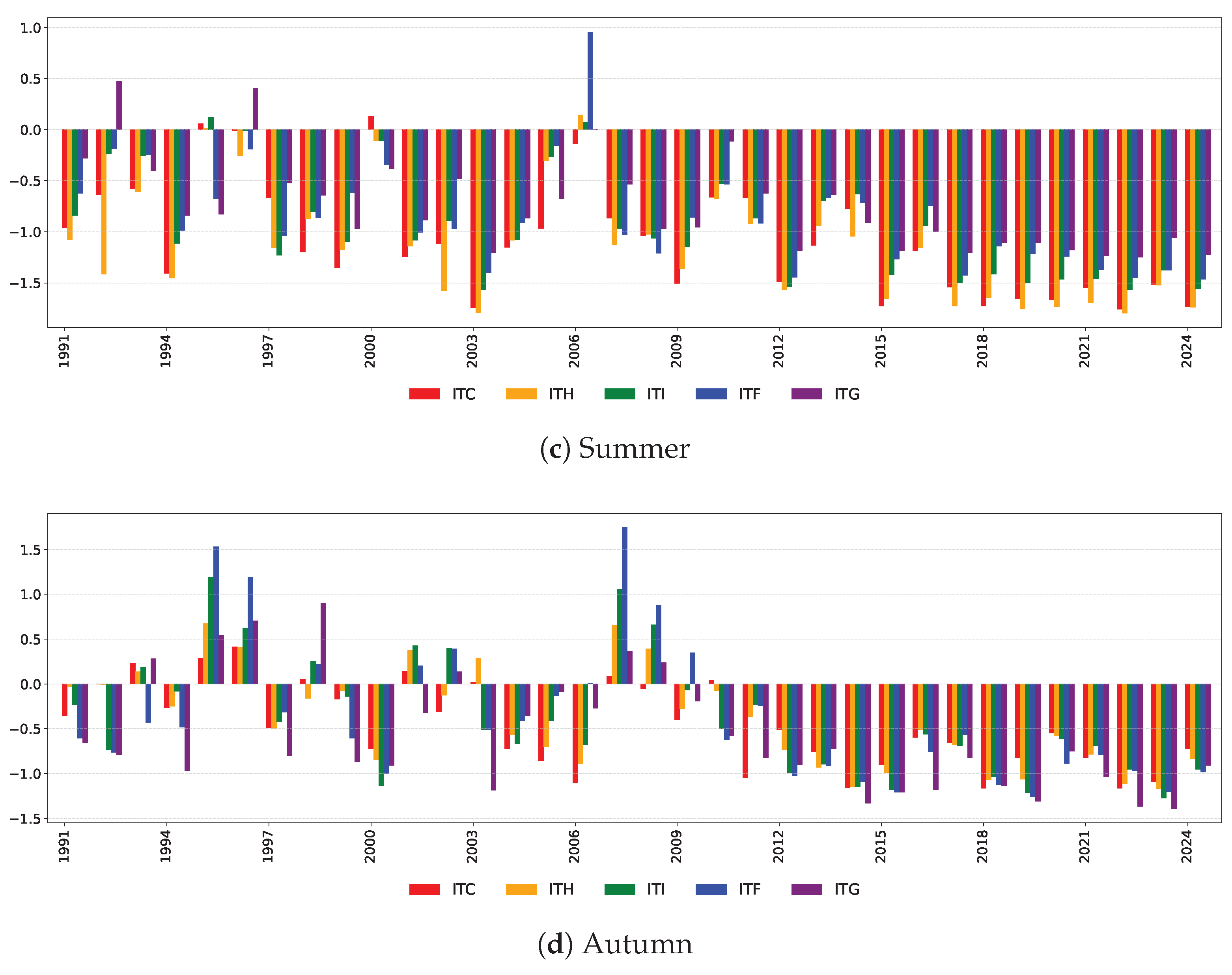 5. Temporal and Spatial Dynamics of ITACI and Its Components