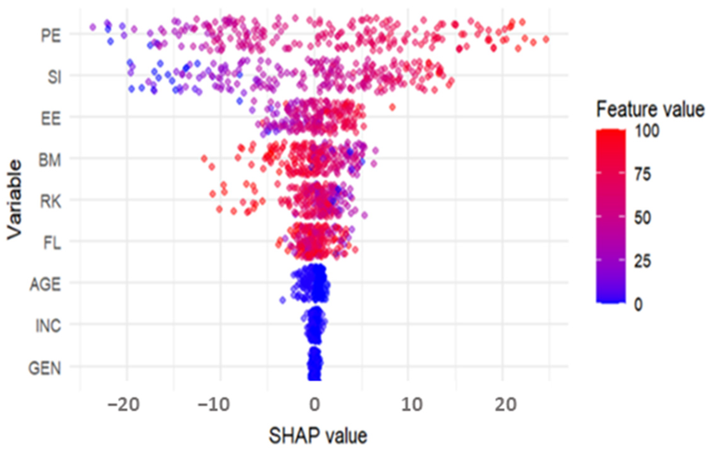 | Mean Absolute SHAP | EE | FL | RK | SI | BM | GEN | AGE | INC | ||