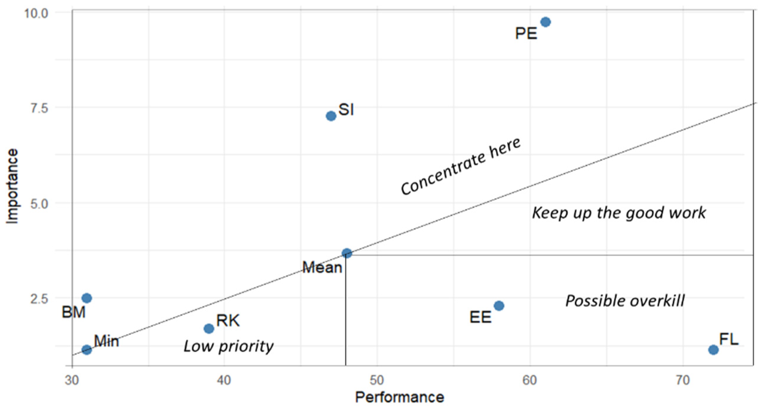 - Abalo, Javier, Jesús Varela, and Vicente Manzano. 2007. Importance values for Importance–Performance Analysis: A formula for spreading out values derived from preference rankings. Journal of Business Research 60: 115–21. [Google Scholar] [CrossRef]