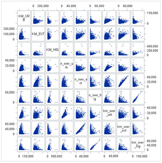 Given that the sum of the percentages of kilometers traveled on urban roads, extra-urban roads, and highways equals 1, one of the three was removed from the model in order to avoid multicollinearity issues. Therefore, it can be concluded that the only significant information is that related to mileage on the different types of roads.
