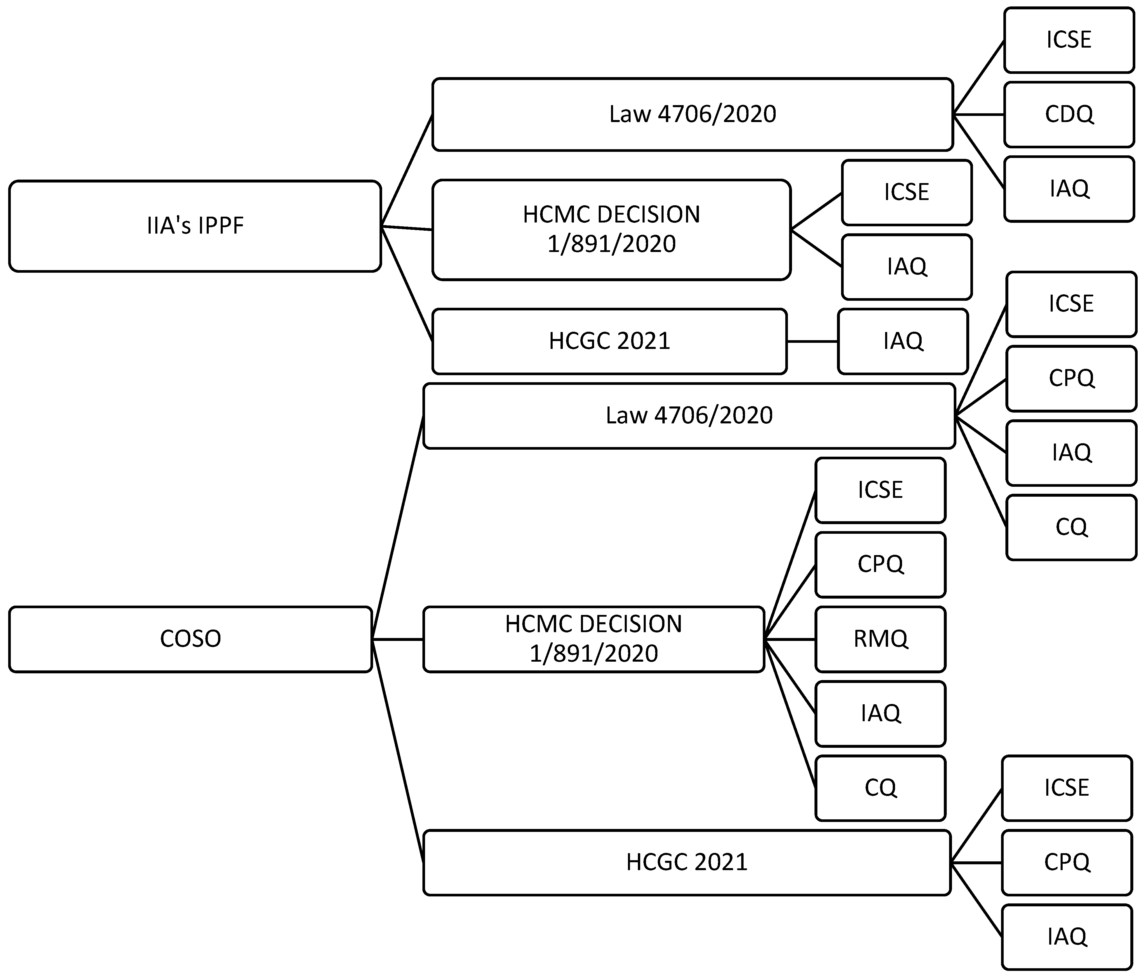 | CONSTRUCTS | QUALITY FACTORS PER CONSTRUCT | CG FRAMEWORK IN GREECE | COSO | IIA’s IPPF | |||