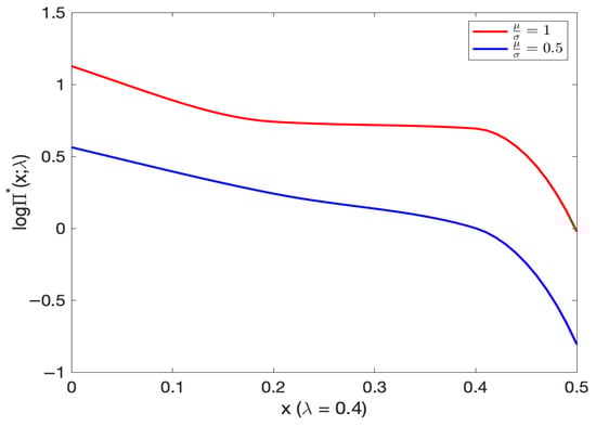 From Figure 15, we see that the optimal investment decreases as the mortality intensity increases. The optimal investment is nearly zero if the initial wealth is higher than 0.1. When and , the curves of the optimal investment are zero. From Figure 16 (and Figure 17 on log scale) we found that the optimal investment decreases as both the initial wealth and mortality intensity increase. The optimal investment approaches zero after exceeding 0.19.