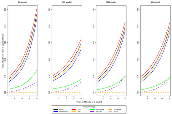 is the risk-adjustment term obtained previously for a ten-year S-forward under a specific premium principle. Furthermore,