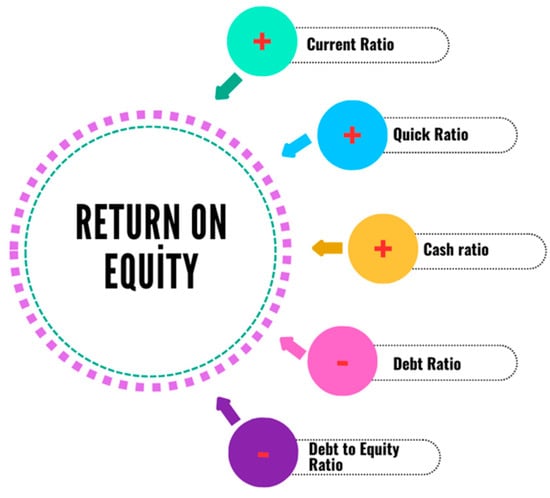 where ROE is the return on equity; CR is the current ratio; QR is the quick ratio; CAR cash ratio; DR is the debt ratio; DER is the debt-to-equity ratio; is the intercept; β1–β5 are the coefficients; ε is the error term.